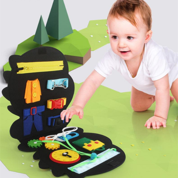 Elevate your child's early learning experience with the BusySmart Montessori Felting Toy. This versatile toy engages young minds aged 1 to 2 in hands-on, brain-boosting activities. From button twisting to gear spinning, zipper pulling, shoelace tying, clock adjusting, and buckle fastening, it fosters dexterity, hand-eye coordination, and problem-solving skills. This multifunctional set offers endless fun and growth opportunities for your little one.