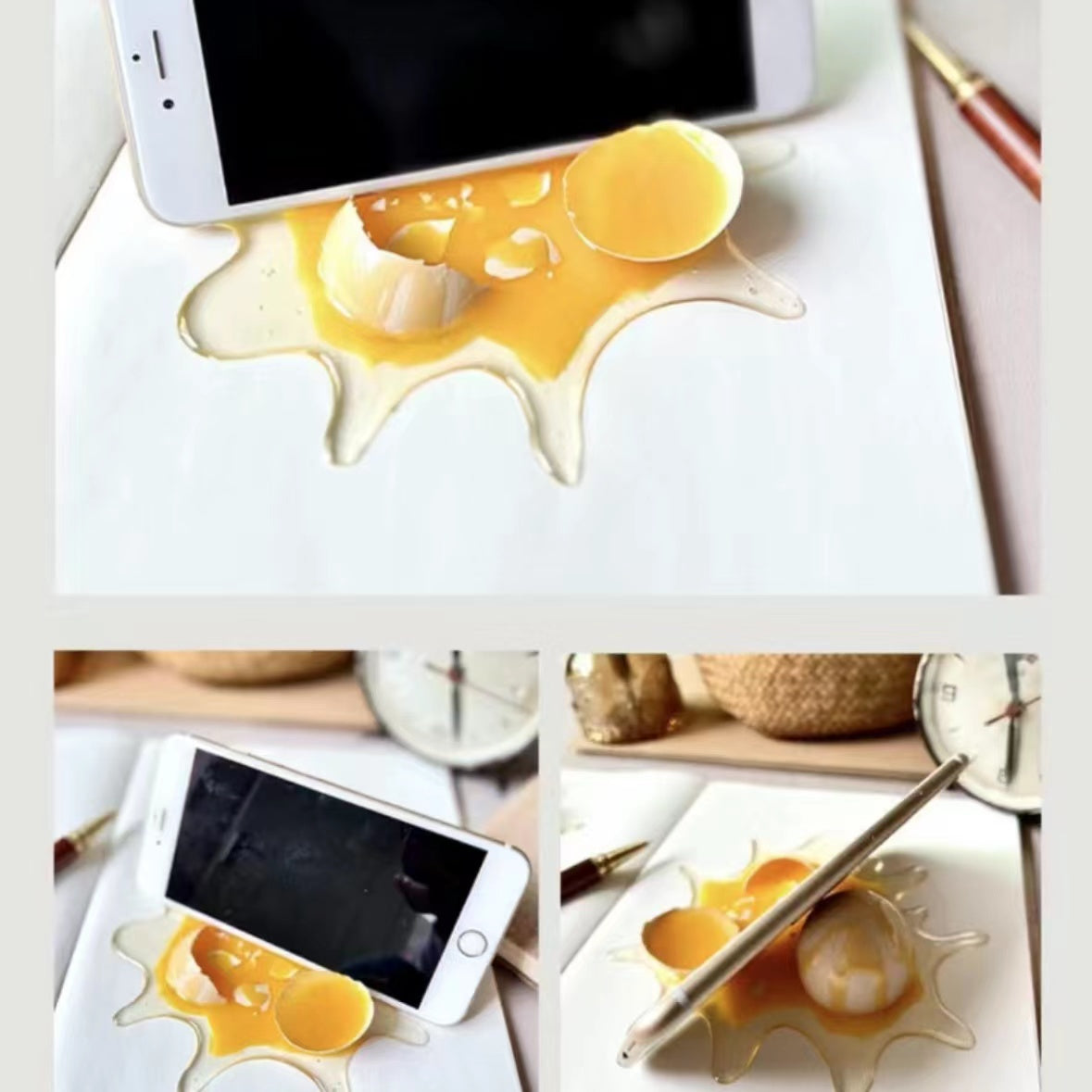 Introducing the PrankPro Phone Stand – a whimsically crafted marvel that seamlessly blends humor and functionality. Crafted from sterilized and solidified real eggshells, this eco-friendly resin accessory serves as a durable phone case or a delightful prank prop. With its odorless resin composition and versatile design, the PrankPro Phone Stand guarantees a vivid, laughter-filled experience while providing a secure grip for your device. Elevate your style, protect your phone, and add a touch of hilarity to your daily life with PrankPro – where innovation meets amusement! Order now for a phone accessory that stands out in every way!