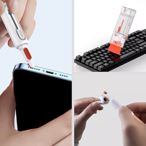 Experience the ultimate electronic device cleaning solution with TechCare Set! This versatile and multi-functional kit is designed to tackle all your cleaning needs, from screens and keyboards to earphones and more. With a built-in phone stand, screen cloth, large brush, keyboard clamp, spray bottle, and a multi-purpose earphone cleaning pen, this all-in-one set ensures your gadgets stay sparkling clean and functioning at their best. Simplify your life with TechCare Set and say goodbye to dust and grime, while enjoying the convenience of a phone stand!